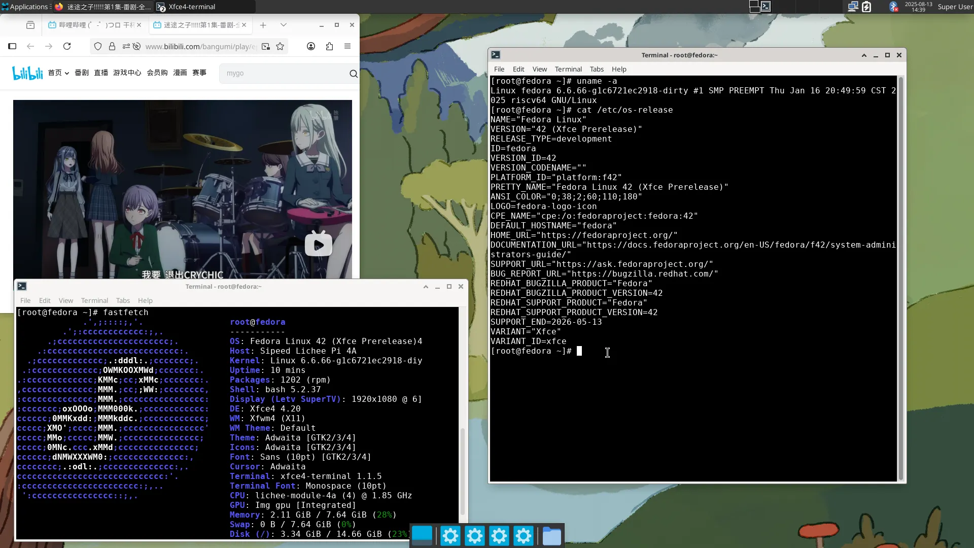 - Fedora Xfce 42: https://mirror.iscas.ac.cn/fedora-riscv/releases/42/Spins/riscv64/images/Xuantie-TH1520/Sipeed-Lichee-Pi-4A/Fedora-Xfce-42-20250730015659.riscv64.Xuantie-TH1520.Sipeed-Lichee-Pi-4A.raw.gz