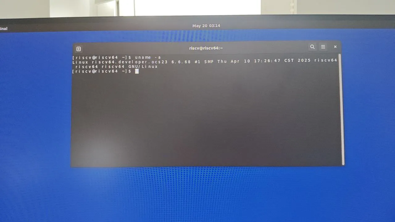 Linux riscv64.developer.ocs23 6.6.68 #1 SMP Thu Apr 10 17:26:47 CST 2025 riscv64 riscv64 riscv64 GNU/Linux