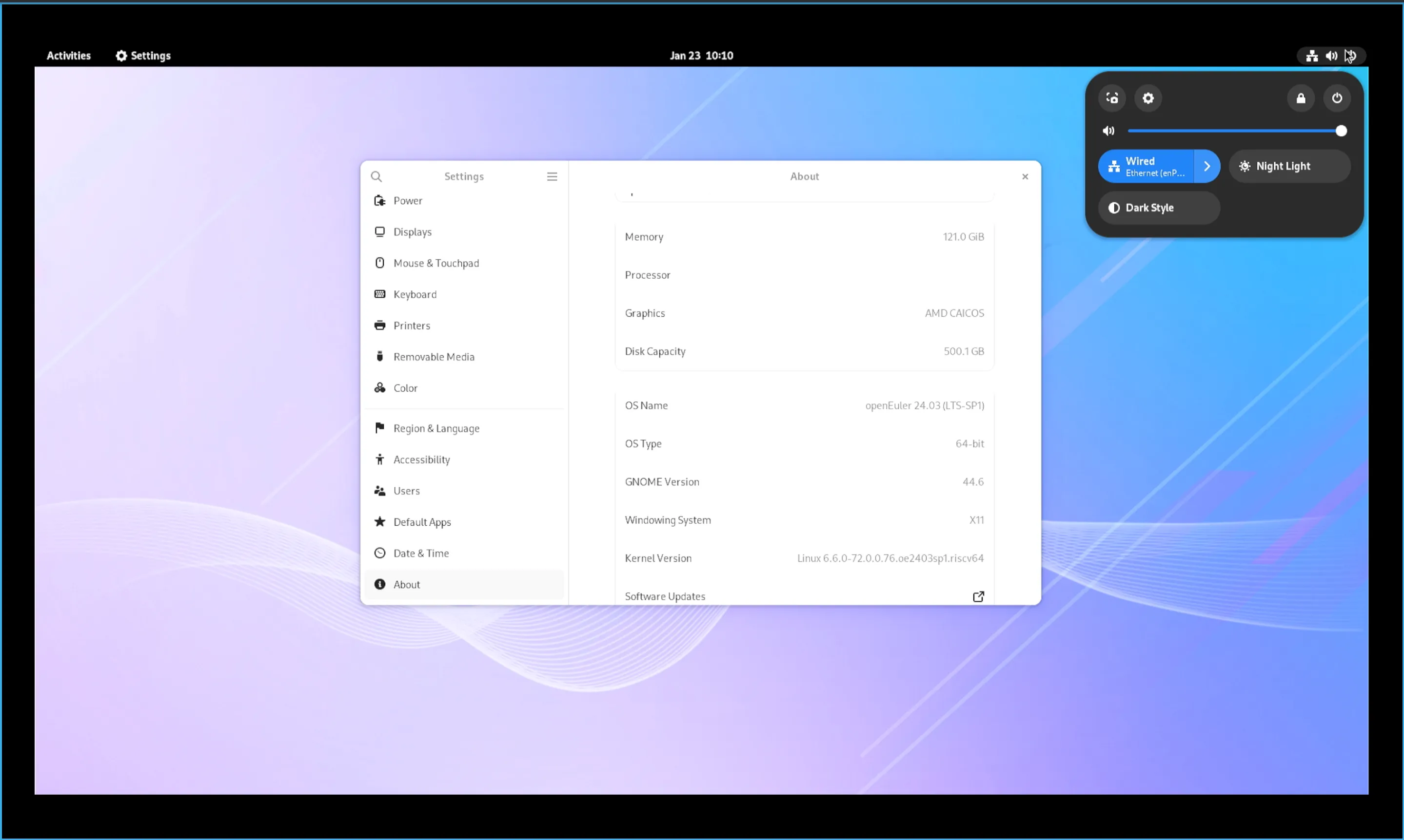 - System Version: openEuler RISC-V 24.03 LTS SP1 (Image, Linux boot)